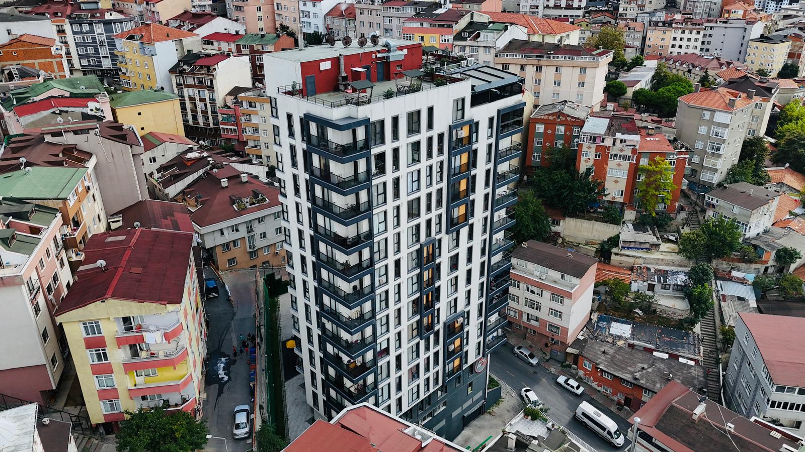 Bu yüksek katlı konut projesinde, estetik ve fonksiyonelliği bir araya getiren dış cephe çözümleriyle şehre değer katan bir yapı oluşturuldu. Kullandığımız malzemelerle uzun ömürlü, çağdaş ve konforlu yaşam alanları tasarlandı.